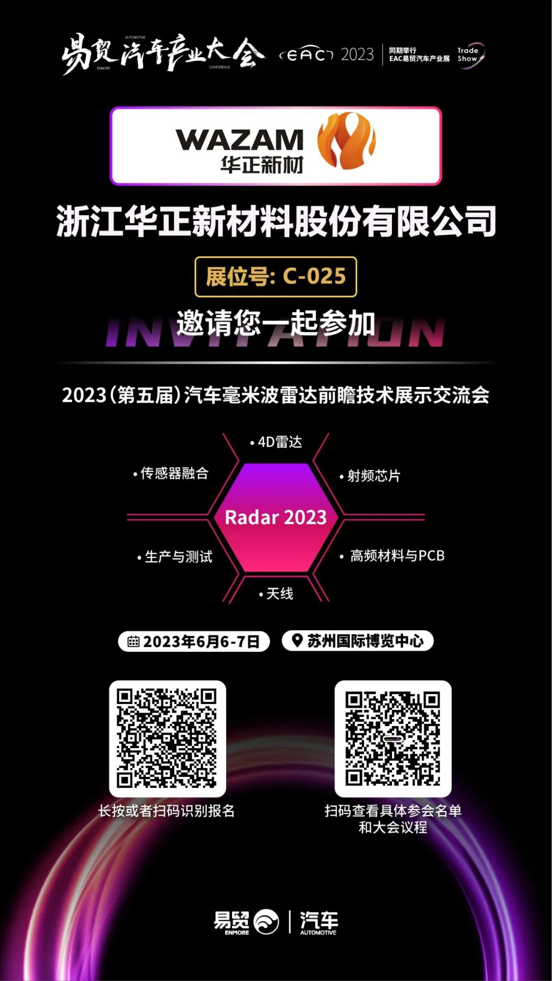 易貿(mào)信息科技與智車行家攜手各大汽車毫米波雷達(dá)上下游產(chǎn)業(yè)鏈企業(yè)將于2023年6月6-7日蘇州國(guó)際博覽中心舉行2023(第五屆)汽車毫米波雷達(dá)前瞻技術(shù)展示交流會(huì),繼續(xù)攜手行業(yè)OEM、Tier1、AD解決方案商、汽車?yán)走_(dá)廠商、模組廠商、芯片廠商、高頻材料企業(yè)、測(cè)試驗(yàn)證企業(yè)以及第三方機(jī)構(gòu)等400余位專家,共...