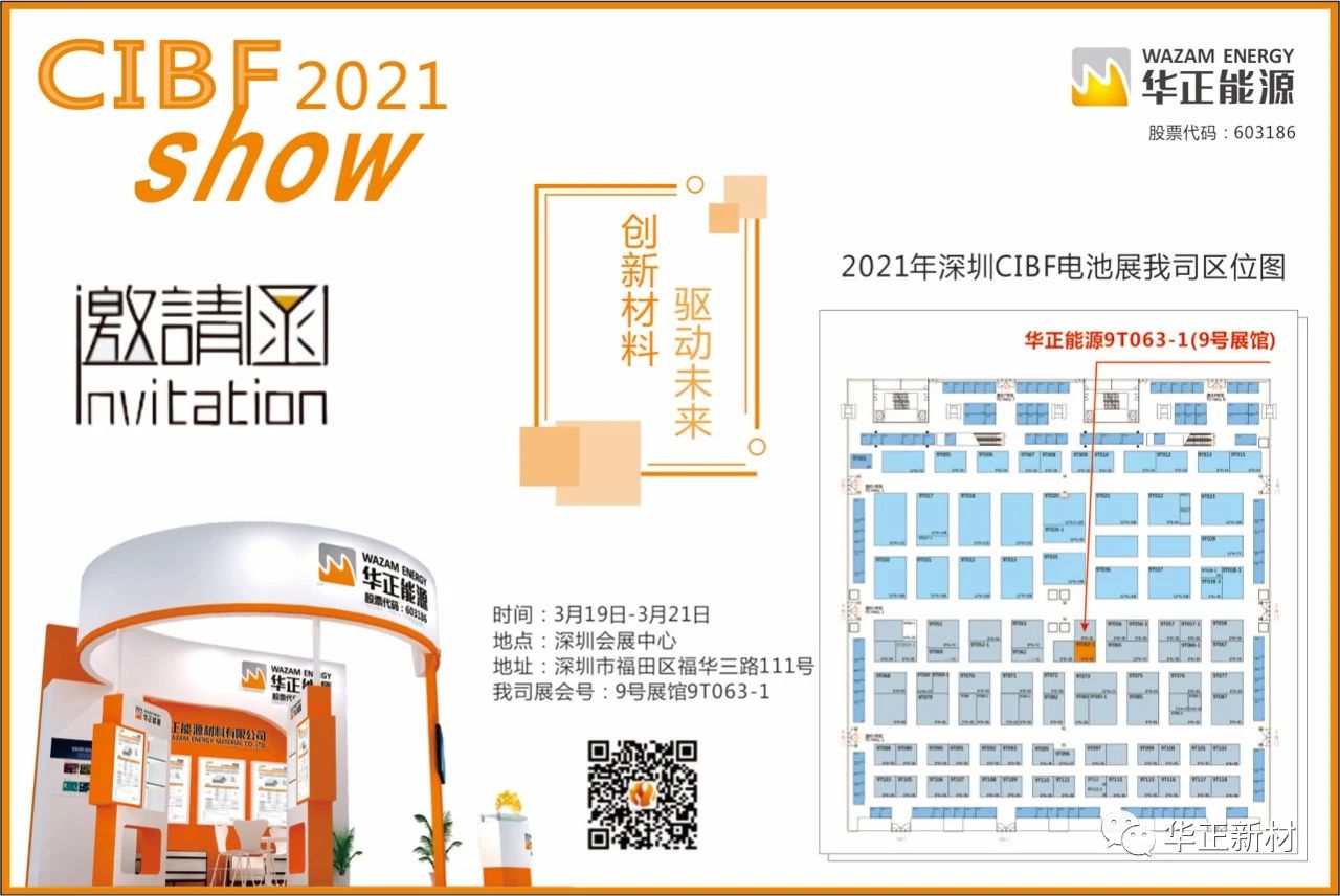 煙花三月,春暖花開。2021年第十四屆中國國際電池技術展覽會(CIBF Show)將于2021年3月19日-21日在深圳會展中心舉辦!我們期待與您相約深圳,相約CIBF! 我司本次展會號:9號展館9T063-1,誠邀各位新朋舊友前來參觀指導!