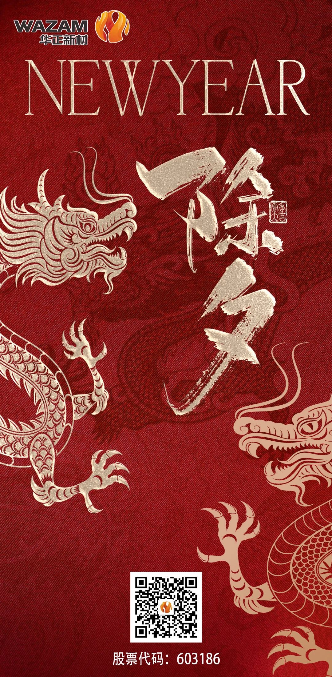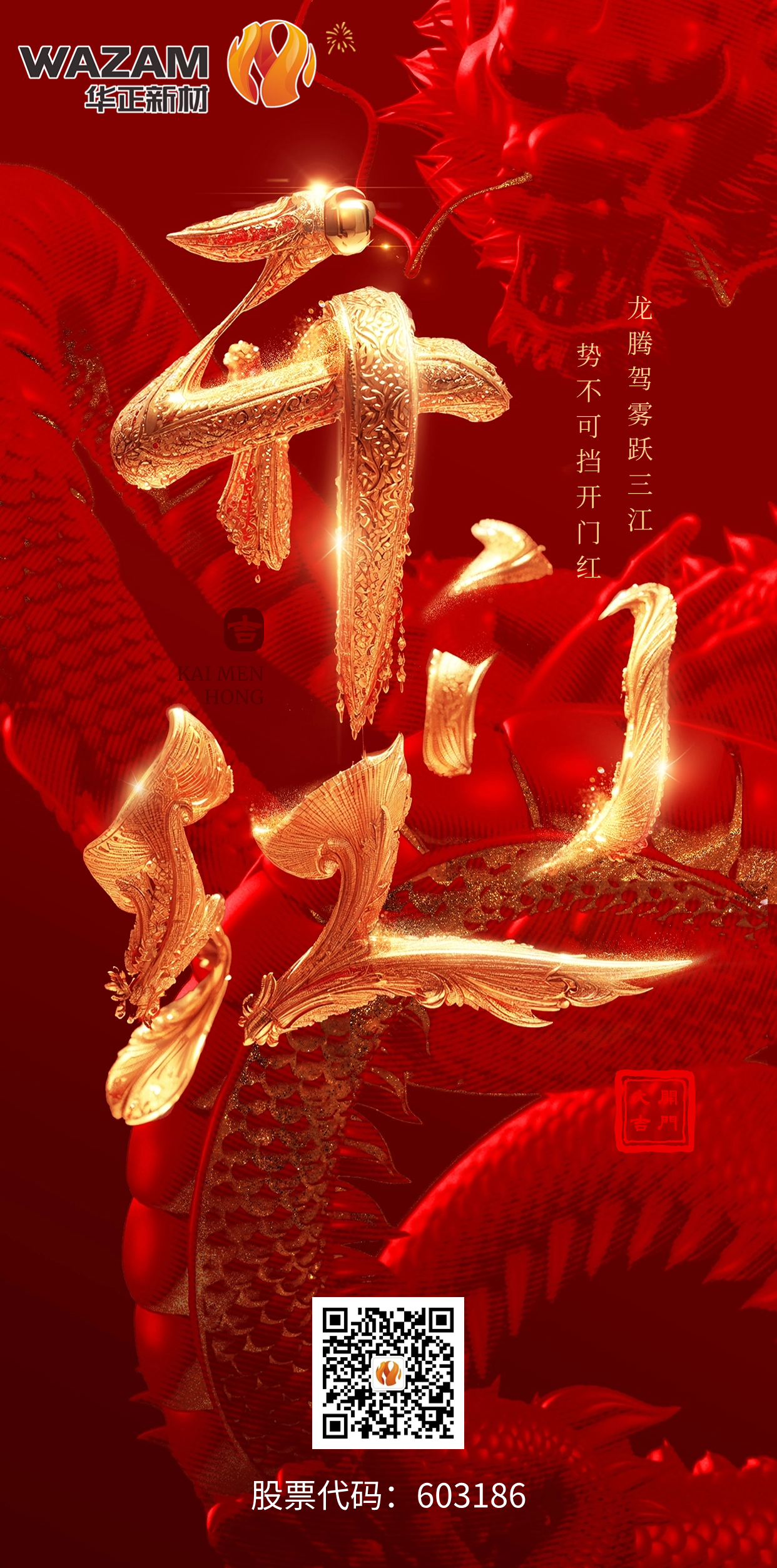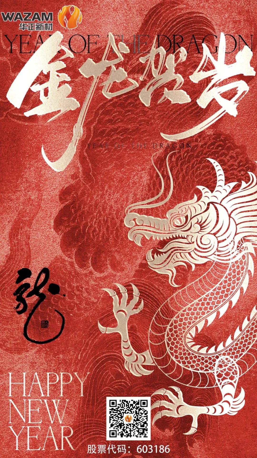 告別玉兔迎金龍,新年氣象樂融融 在這辭舊迎新的時刻 華正新材給您拜年啦! 愿您多喜樂、歲無憂 迎龍行大運,聚八方財氣 新年啟航,共赴新程,向財運靠“龍”!